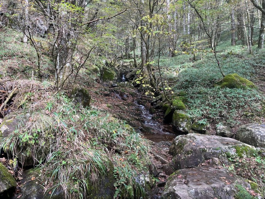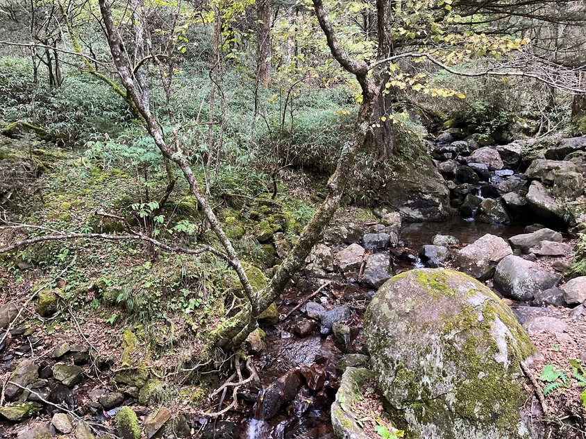 後は景色を楽しんで避難小屋に到着。ここから峠は目指さず旧道を通る。まだ歩いていない道。雷岩方面の景色が綺麗。旧道は歩きやすかった。また予想していなかったが沢があり、まあ~飲めないだろうが雰囲気和よかった。そしてテント場に到着(1320)。