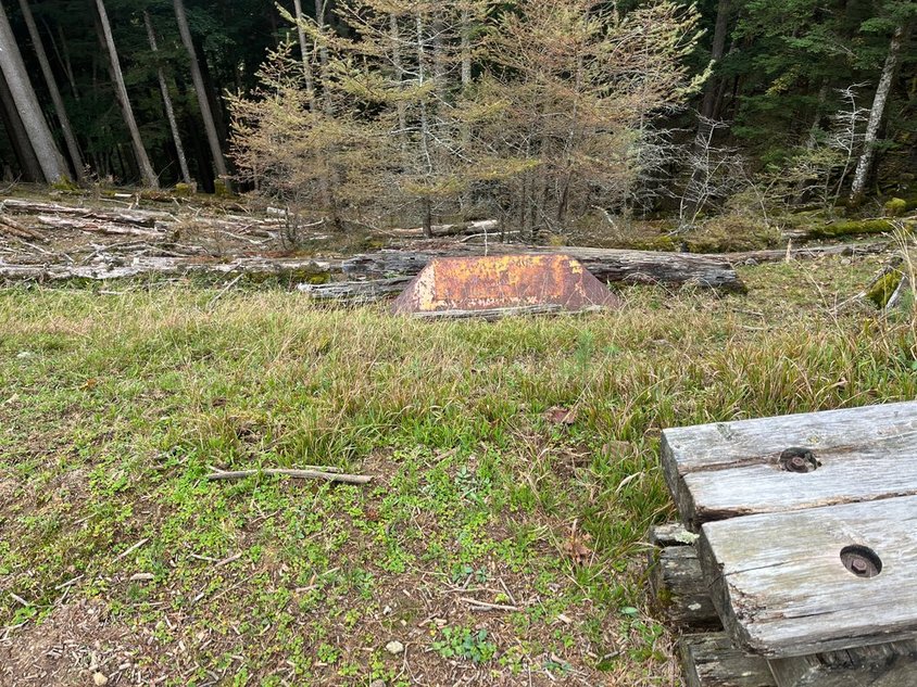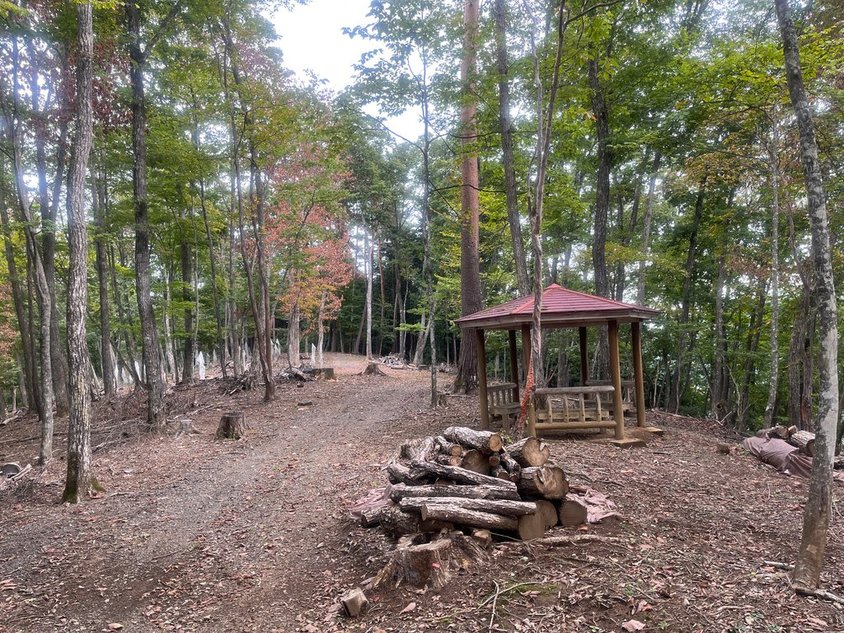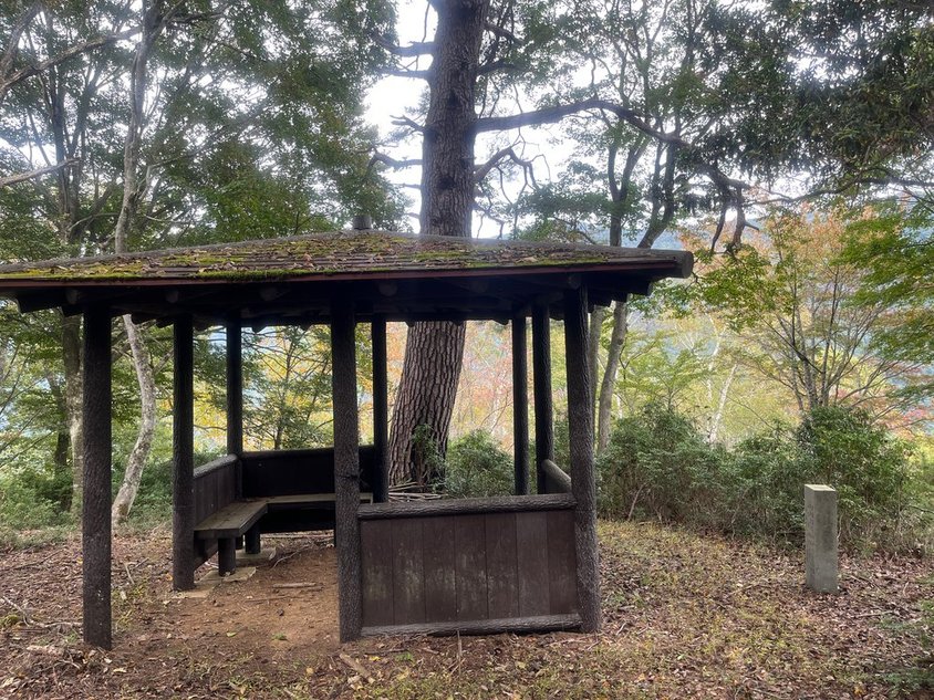 なんだろう??少し登り返して何か開けた東屋があるところに到着。地図上ではこの先にも東屋があることになっている。確かに東屋がある。