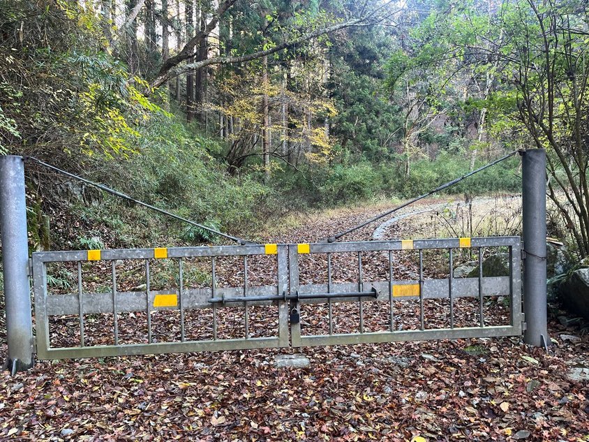 ソロ・ペアの方々がツツジ新道方面へ、また3名ほどのパーティは畦ヶ丸へ。小生も装備を整え出発(0740)。暫くは林道歩きのはず。ツツジ新道への登山口を過ぎ更に林道を進む。途中でゲート。ここまで車は来れるんだ。