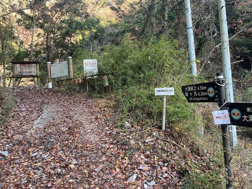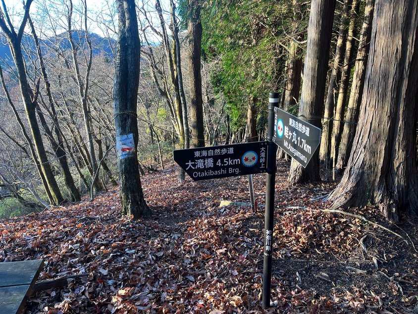 先に進む。大滝橋と権現山方面の分岐に到着。ベンチもあるので少し早いが休憩。