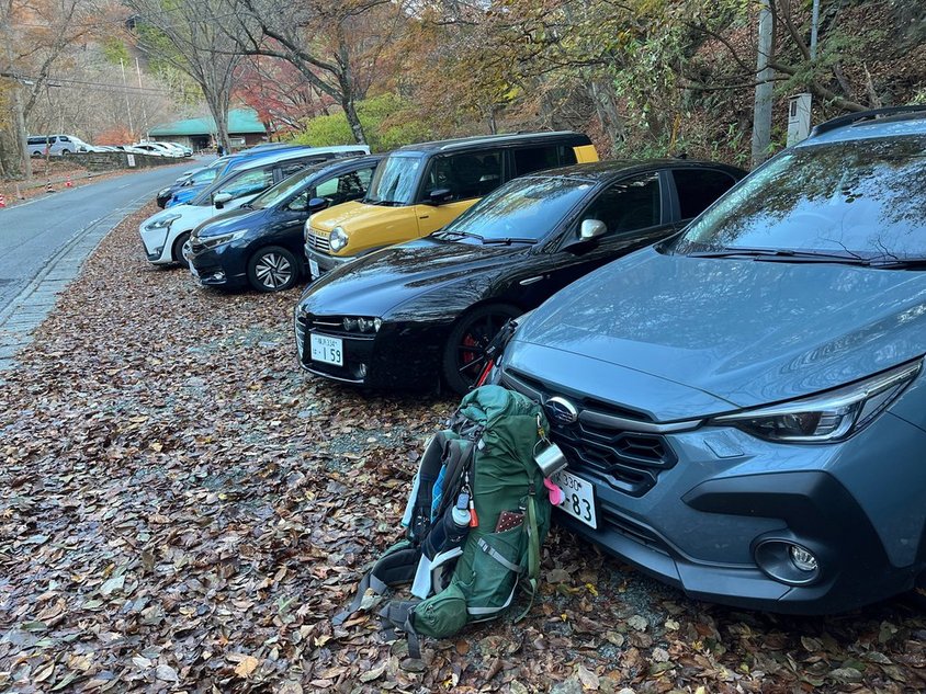 西丹沢VCには7時半少し前に着いたが、何とかVC手前右の駐車スペースに停めることができた。3台ほどの空きだった。紅葉は終わり?だがまだ檜洞や畦ヶ丸は登る人がいるんだな~、と感心。