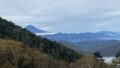 記憶通りの場所。休憩してリスタート。急坂もなく、階段や段差のある下りでもない。膝にやさしい。ほどなく登山口のある車道に出た。後は車道を歩いて御池に到着(1240)。バスまで2時間半以上か・・・。